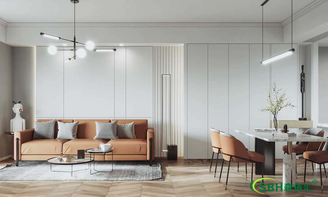 森佰汇航空纤维墙咔全屋定制轻奢风格既有对传统家居艺术的传承,亦有对当代都市细节的考究,时尚与简洁、复古与现代、整体与线条、不同时代的不同元素和谐共生。